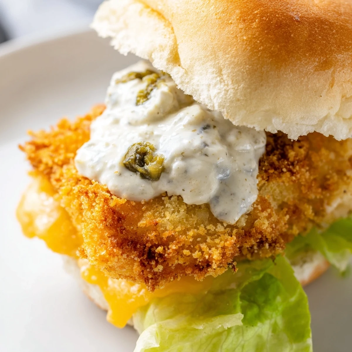 - Lightly toast the buns, then layer fish, cheese, lettuce, and a generous dollop of sauce before topping with the bun and serving immediately