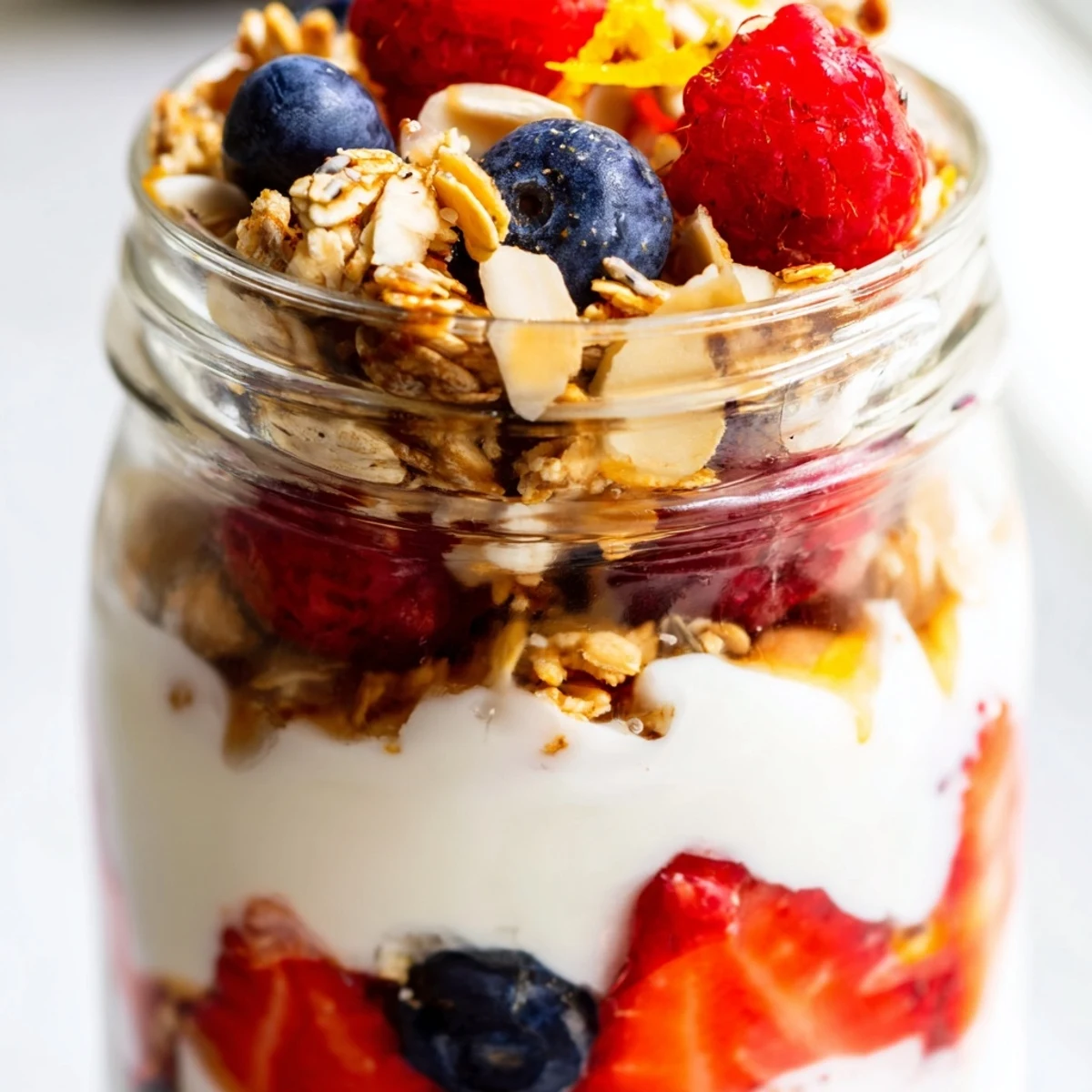 - Mixed fresh berries: Strawberries bring sweetness, blueberries add little bursts of juice, and raspberries offer a tart contrast that cuts through the rich yogurt
